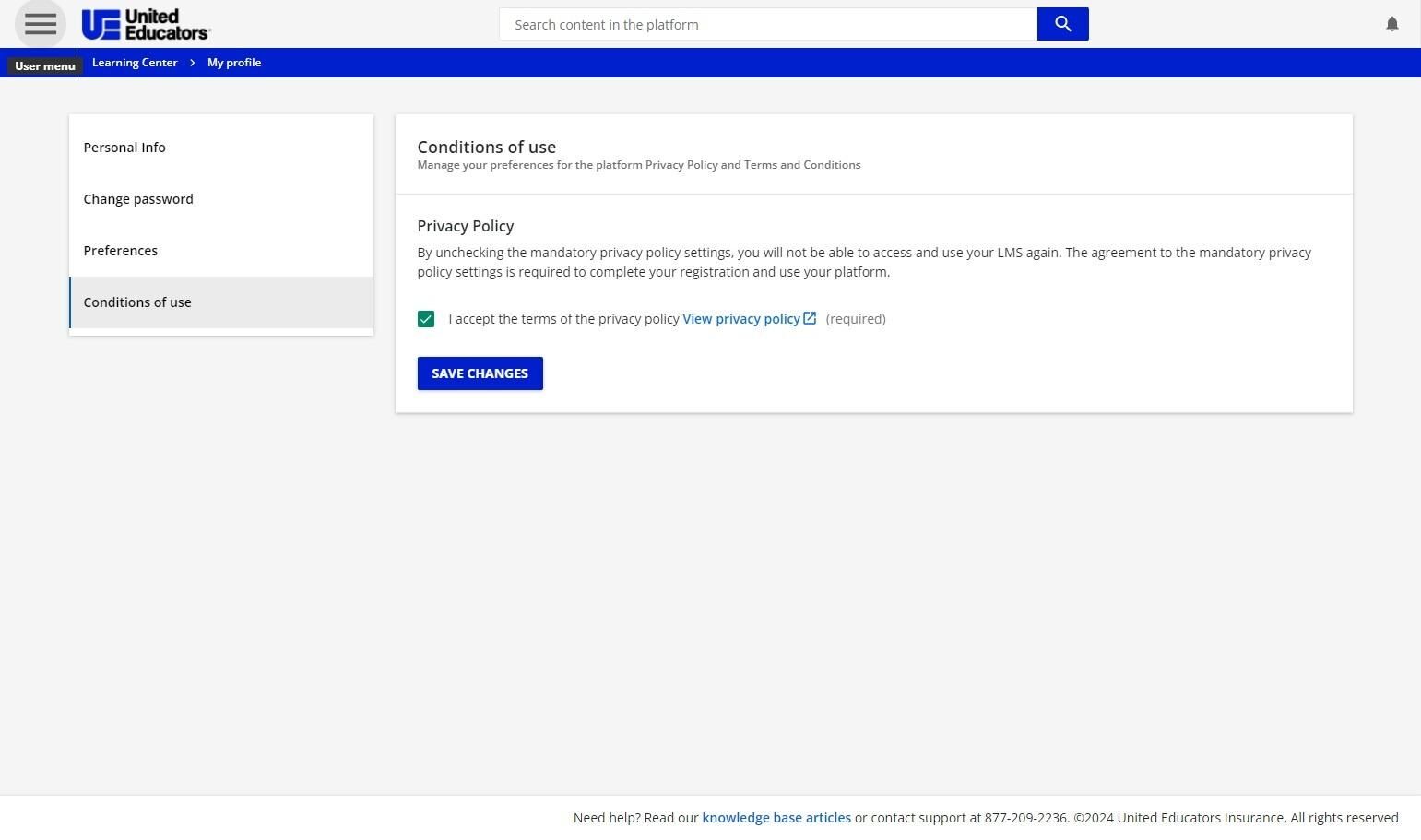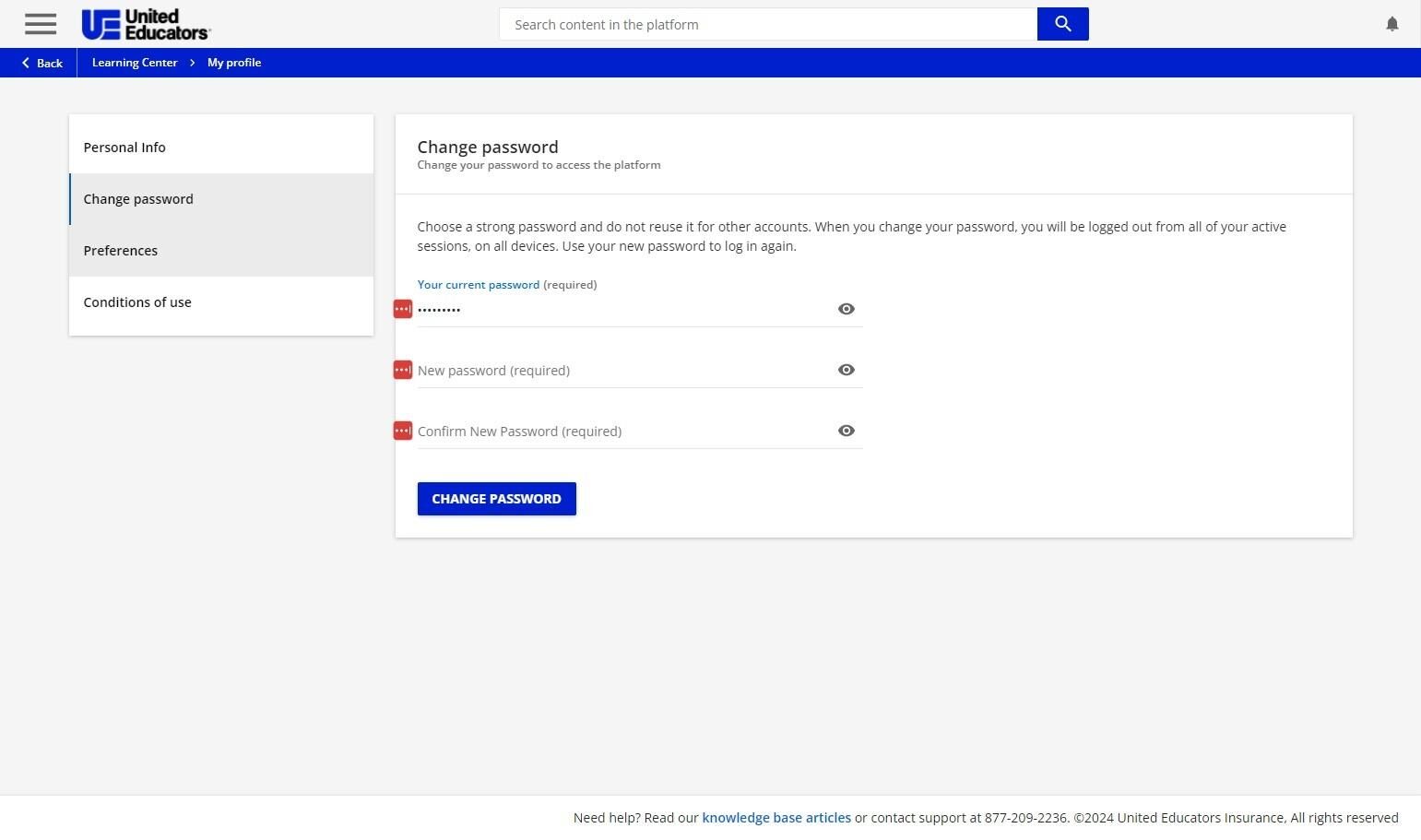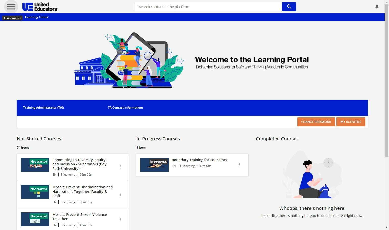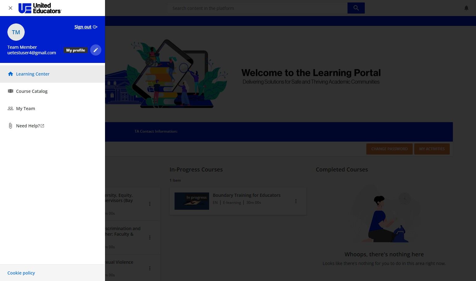 Your user menu enables you to reach important areas of the platform, such as your profile or all of your courses and learning plans. 1. To access the user menu, press the menu icon in the top lef